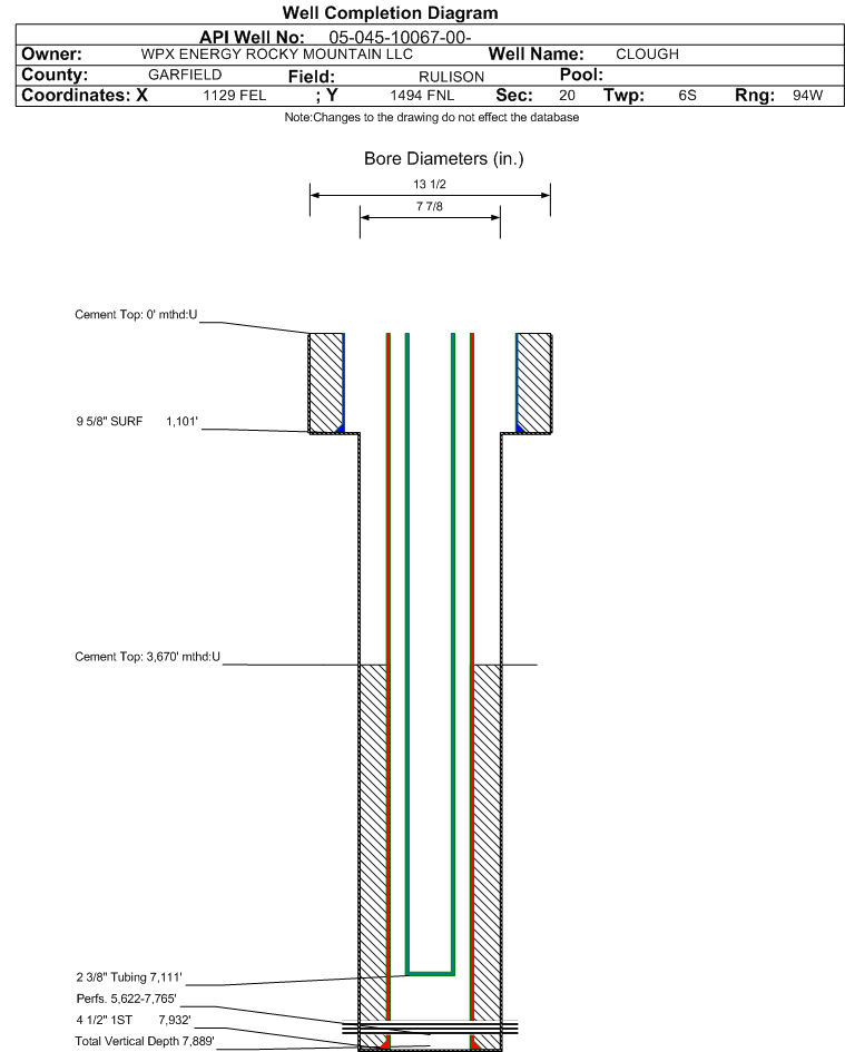 | | Perforation Data: | | Interval Top: | 5622 ft. | # Of Holes: | 110 | | Interval Bottom: | 7765 ft. | Hole Size: | 0.42 in. |