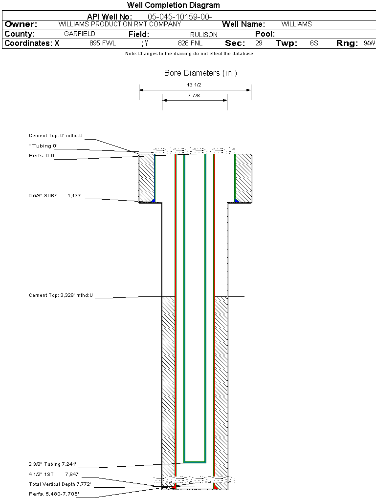 | | Perforation Data: | | Interval Top: | 5480 ft. | # Of Holes: | 100 | | Interval Bottom: | 7705 ft. | Hole Size: | 0.34 in. |