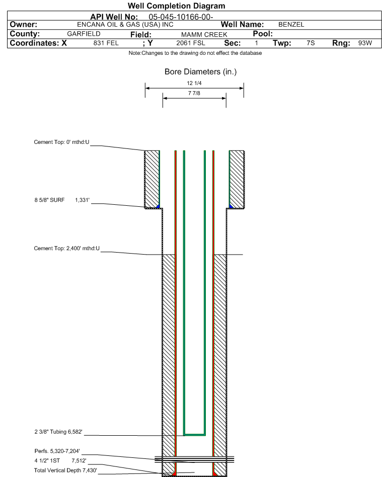 | | Perforation Data: | | Interval Top: | 5320 ft. | # Of Holes: | 120 | | Interval Bottom: | 7204 ft. | Hole Size: | 0.32 in. |