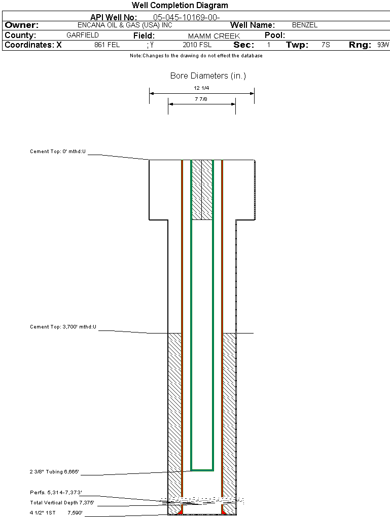 | | Perforation Data: | | Interval Top: | 5314 ft. | # Of Holes: | 124 | | Interval Bottom: | 7373 ft. | Hole Size: | 0.32 in. |