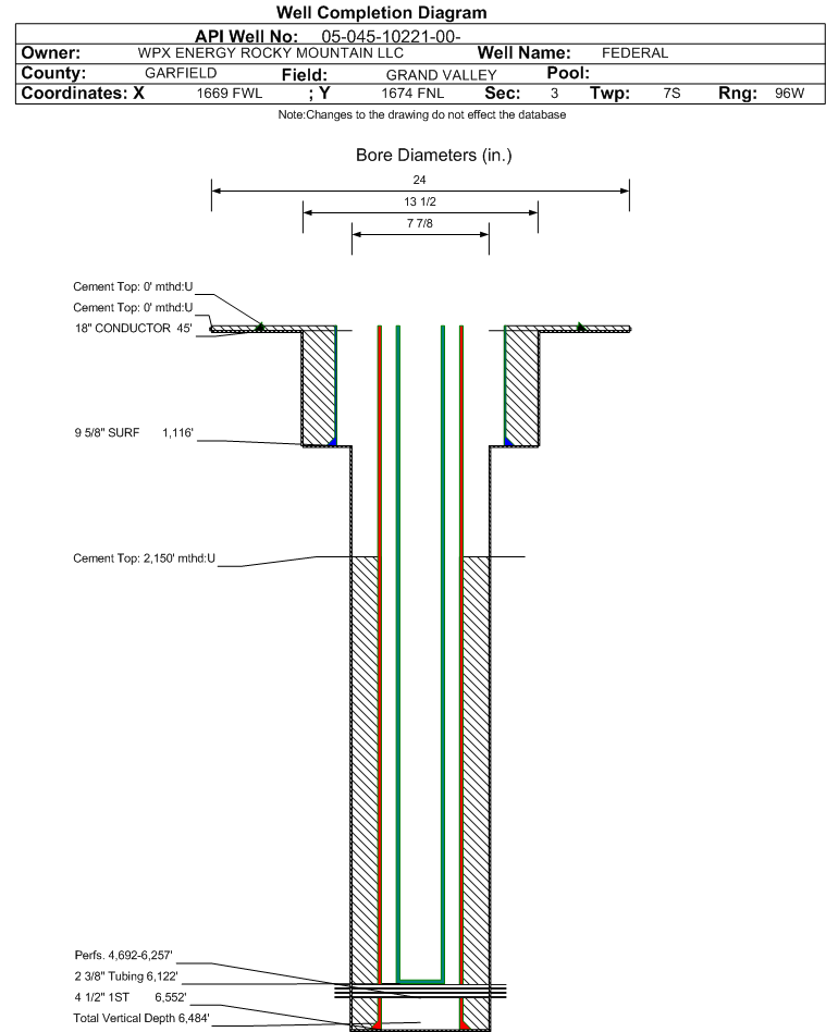 | | Perforation Data: | | Interval Top: | 4692 ft. | # Of Holes: | 85 | | Interval Bottom: | 6257 ft. | Hole Size: | 0.34 in. |
