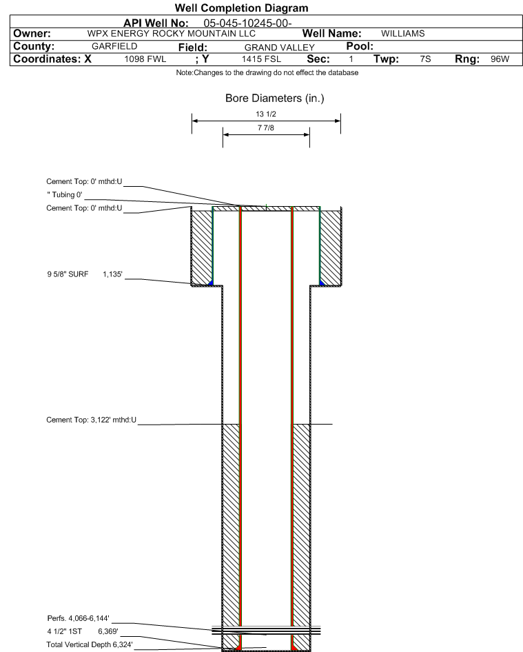| | Perforation Data: | | Interval Top: | 4066 ft. | # Of Holes: | 115 | | Interval Bottom: | 6144 ft. | Hole Size: | 0.35 in. |