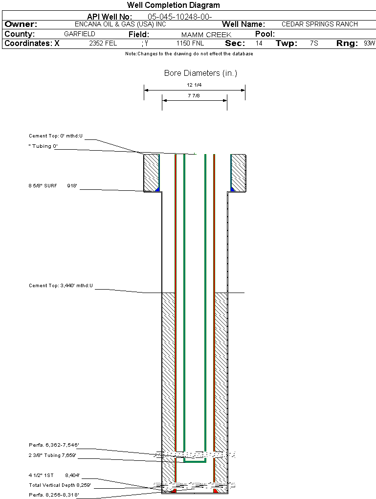 | | Perforation Data: | | Interval Top: | 8256 ft. | # Of Holes: | 10 | | Interval Bottom: | 8318 ft. | Hole Size: | 0.37 in. |