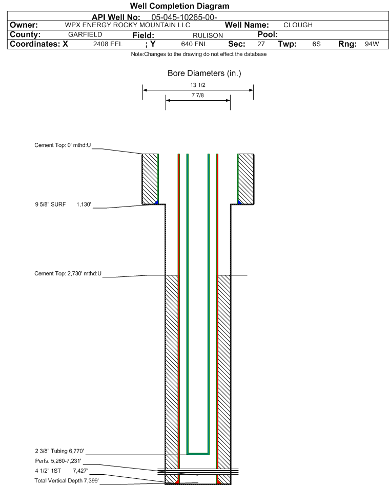 | | Perforation Data: | | Interval Top: | 5260 ft. | # Of Holes: | 106 | | Interval Bottom: | 7231 ft. | Hole Size: | 0.34 in. |