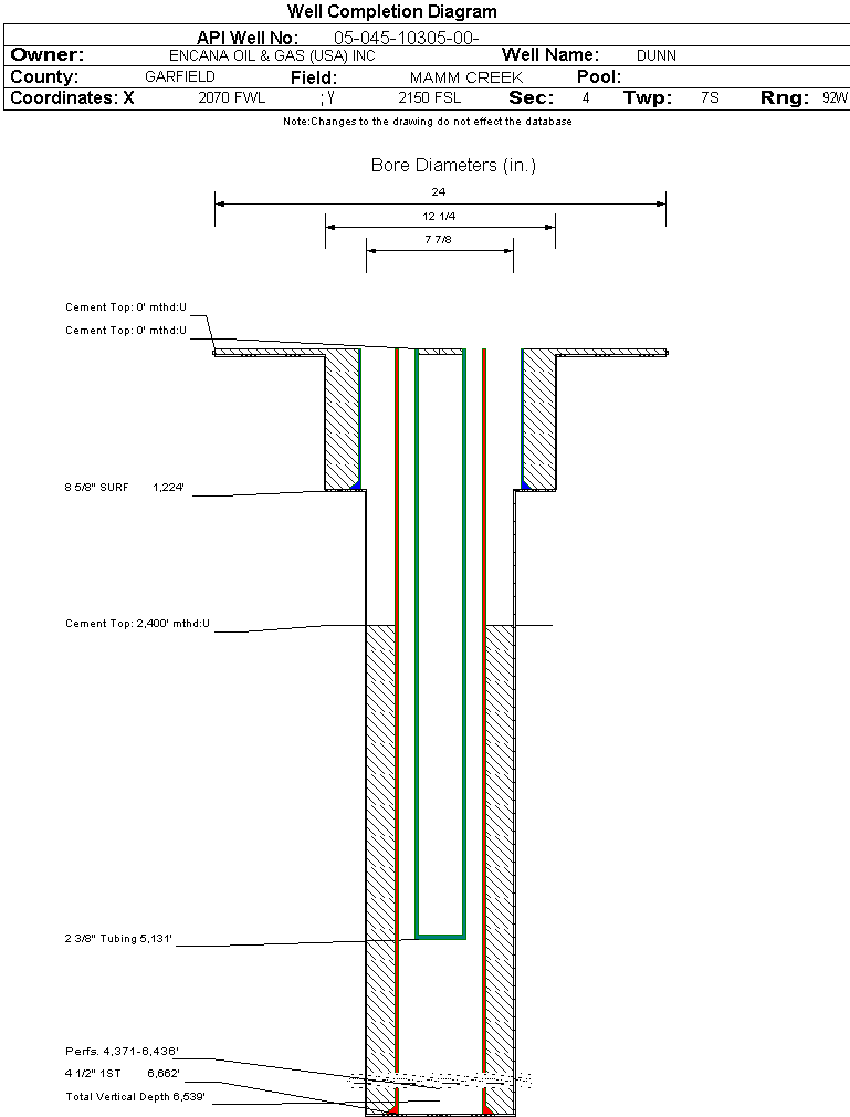 | | Perforation Data: | | Interval Top: | 4371 ft. | # Of Holes: | 106 | | Interval Bottom: | 6436 ft. | Hole Size: | 0.32 in. |