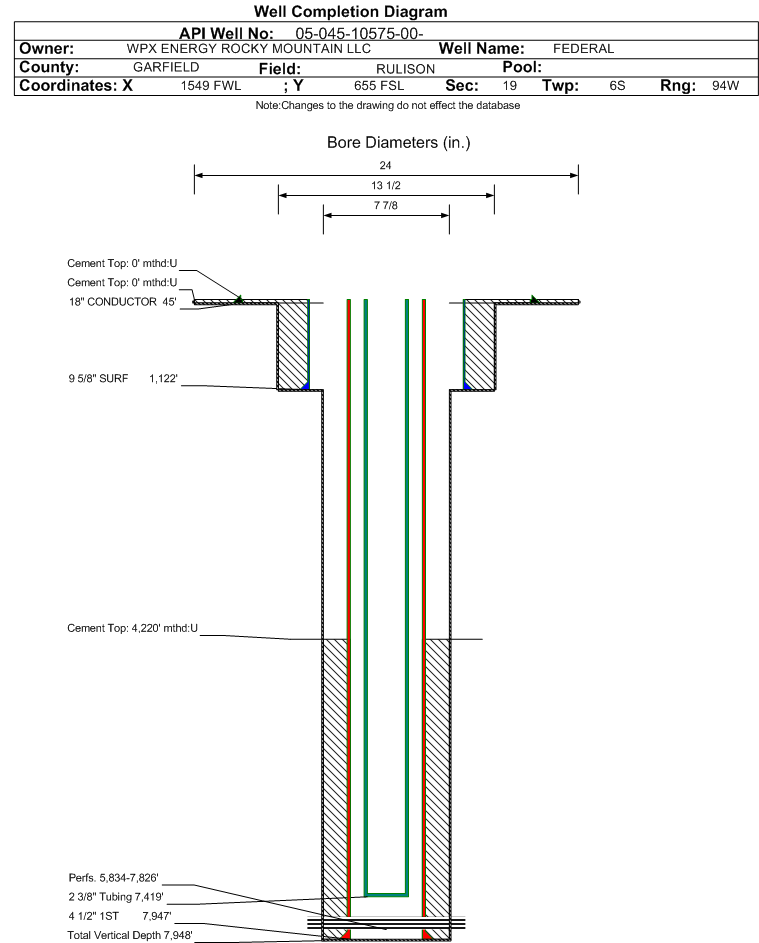 | | Perforation Data: | | Interval Top: | 5834 ft. | # Of Holes: | 96 | | Interval Bottom: | 7826 ft. | Hole Size: | 0.42 in. |