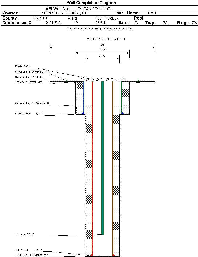 | | Tubing Size: | | Tubing Setting Depth: | 7117 ft. | | Tubing Packer Depth: | | Tubing Multiple Packer: | | | Open Hole Top: | | Open Hole Bottom: | | | Initial Test Data: | | Test Date: | N/A | Test Method: | | | Hours Tested: | | Gas Type: | | | Gas Disposal: | | |