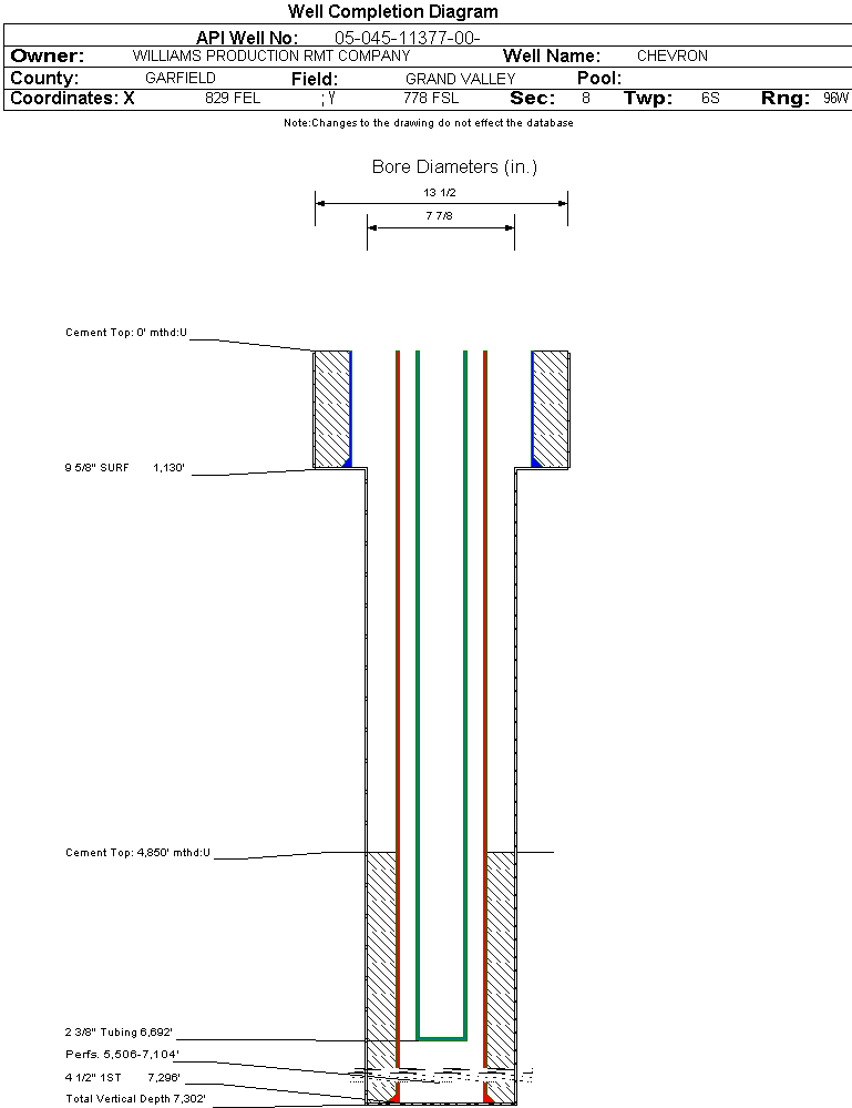 Formation WFCM Formation Classification: GW Status: PR - 5/5/2006 Interval Top: 5506 ft. Interval Bottom: 7104 ft.| Completed Information for Formation WILLIAMS FORK - CAMEO | | 1st Production Date: | 3/28/2006 | Choke Size: | 0.219 in. | | Formation Name: | WILLIAMS FORK - CAMEO | Commingled: | No | | Production Method: | | | Open Hole Completion: | No |