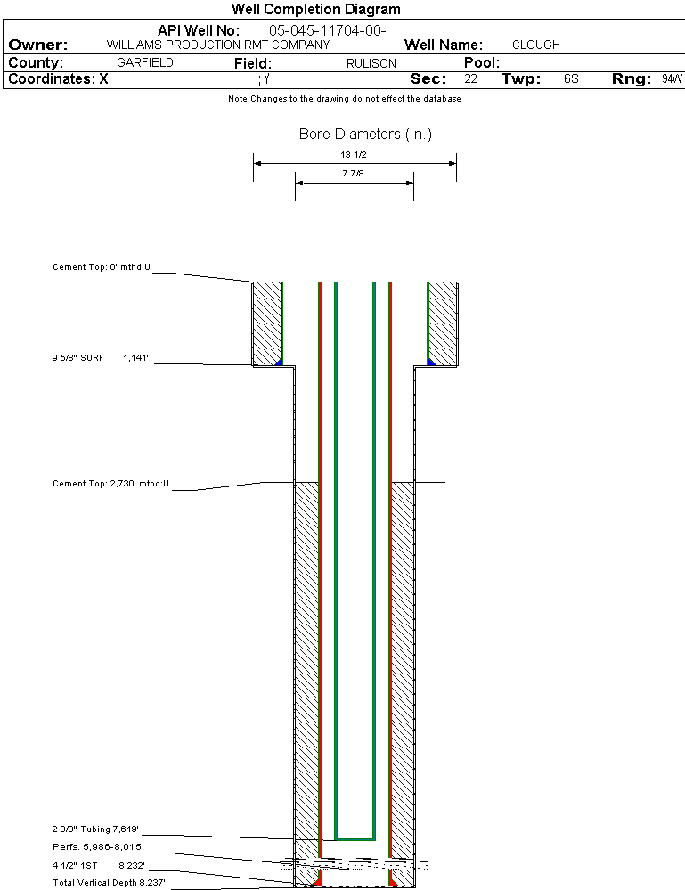| | Perforation Data: | | Interval Top: | 5986 ft. | # Of Holes: | 118 | | Interval Bottom: | 8015 ft. | Hole Size: | 0.35 in. |
