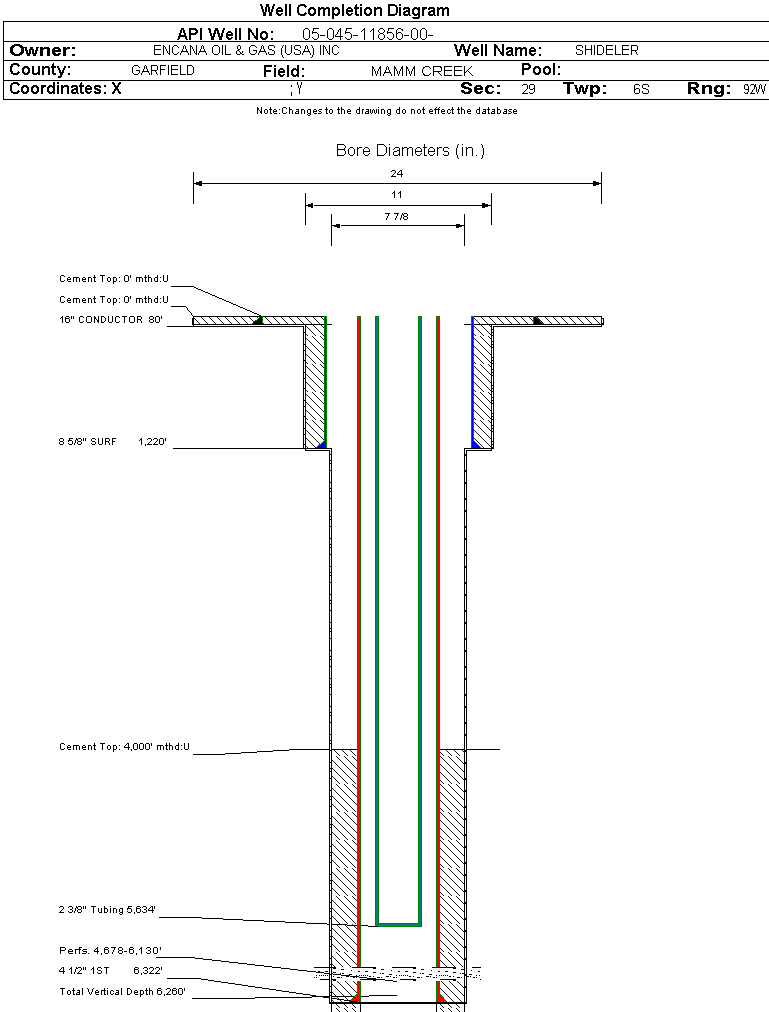 Wellbore #00 Wellbore Classification: GW Status: PR - 6/3/2007 Measured TD: 6325 ft. Vertical TD: 6260 ft.| Wellbore Data for Original Wellbore | Wellbore Classification: GW PR - 6/3/2007 | | Wellbore Permit | DIRECTIONAL | | Permit #: | 20054880 | Expiration Date: | 1/25/2007 | | Proposed Top PZ Location: | Sec:29 Twp: 6S 92W | Footage: 246 FSL 2079 FEL | | Bottom Hole Location: | Sec:29 Twp: 6S 92W | Footage: 246 FSL 2079 FEL | | Proposed Depth/Form: | 7012 ft. | | Surface Mineral Owner Same: | Yes | | Mineral Owner: | FEE | Surface Owner: | FEE | | Unit: | | Unit Number: | | | Formation And Spacing: | Code: WMFK , Formation: WILLIAMS FORK , Order: 191-8 , Unit Acreage: , Drill Unit: |