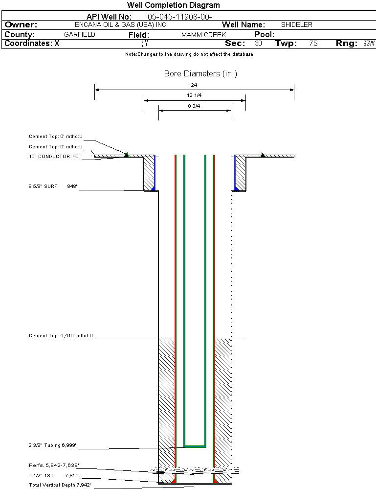 | | Perforation Data: | | Interval Top: | 5942 ft. | # Of Holes: | 140 | | Interval Bottom: | 7638 ft. | Hole Size: | 0.36 in. |