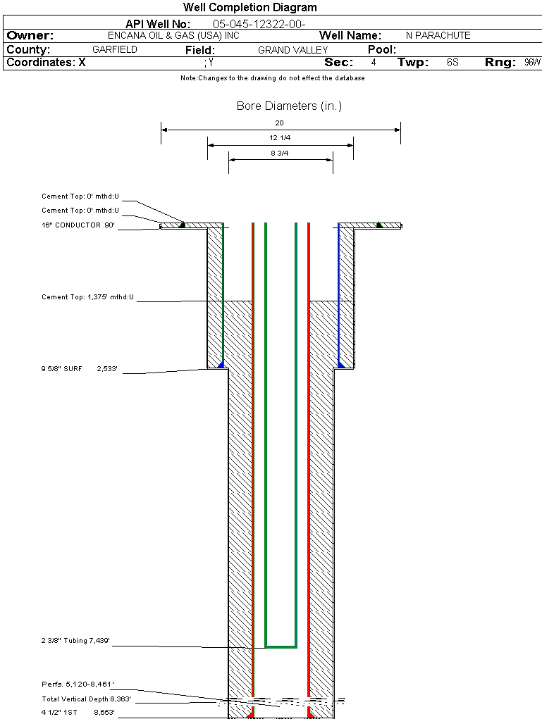 | | Perforation Data: | | Interval Top: | 5120 ft. | # Of Holes: | 279 | | Interval Bottom: | 8461 ft. | Hole Size: | 0.41 in. |