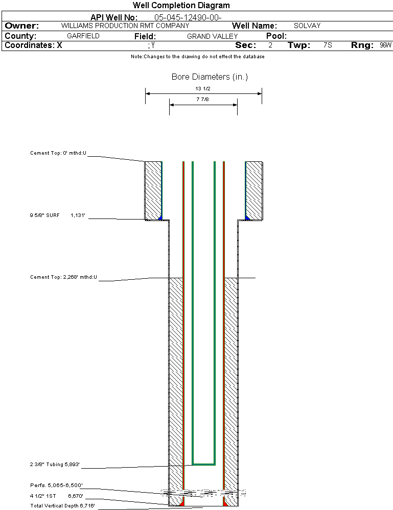Wellbore #00 Wellbore Classification: GW Status: PR - 4/20/2006 Measured TD: 6818 ft. Vertical TD: 6716 ft.| Wellbore Data for Original Wellbore | Wellbore Classification: GW PR - 4/20/2006 | | Wellbore Permit | DIRECTIONAL | | Permit #: | 20061967 | Expiration Date: | 6/29/2007 | | Proposed Top PZ Location: | Sec: Twp: | Footage: 1066 FNL 1281 FEL | | Bottom Hole Location: | Sec:2 Twp: 7S 96W | Footage: 1066 FNL 1281 FEL | | Proposed Depth/Form: | 6802 ft. | | Surface Mineral Owner Same: | No | | Mineral Owner: | FEE | Surface Owner: | FEE | | Unit: | | Unit Number: | | | Formation And Spacing: | Code: WMFK , Formation: WILLIAMS FORK , Order: 139-38 , Unit Acreage: 160, Drill Unit: NE4 |