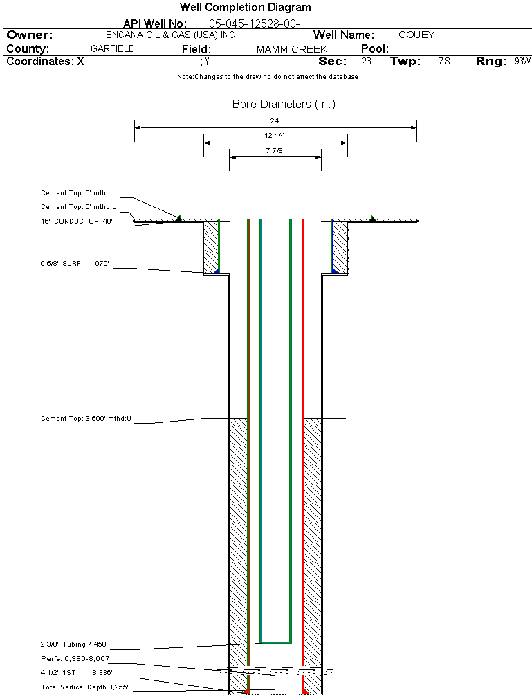 Formation WMFK Formation Classification: GW Status: PR - 6/1/2024 Interval Top: 6380 ft. Interval Bottom: 8007 ft.| Completed Information for Formation WILLIAMS FORK | | 1st Production Date: | 6/17/2007 | Choke Size: | 0.281 in. | | Formation Name: | WILLIAMS FORK | Commingled: | No | | Production Method: | | | Open Hole Completion: | No |