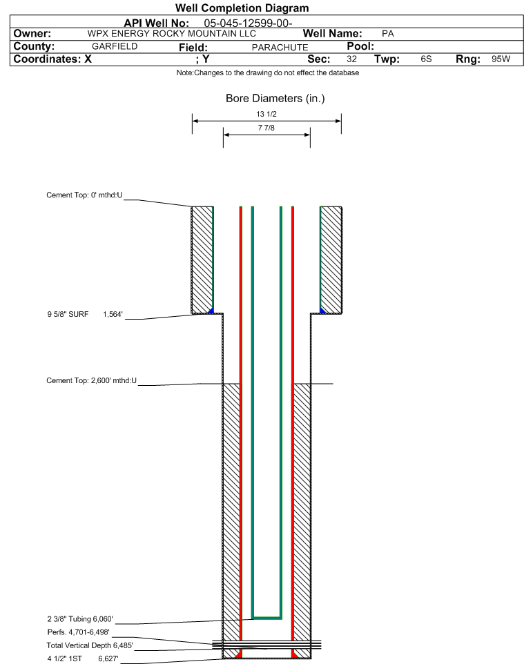 Cement:Sacks: 975, Top: 2600 ft., Bottom: 6627 ft., Determination Method: CBL