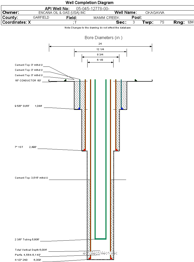 Formation WMFK Formation Classification: GW Status: SI - 8/1/2025 Interval Top: 4564 ft. Interval Bottom: 6148 ft.| Completed Information for Formation WILLIAMS FORK | | 1st Production Date: | 2/5/2007 | Choke Size: | 20.000 in. | | Formation Name: | WILLIAMS FORK | Commingled: | No | | Production Method: | | | Open Hole Completion: | No |