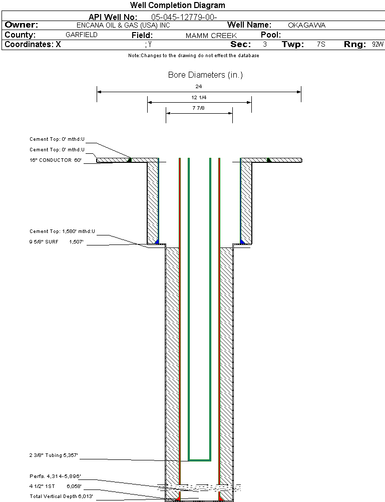 | | Perforation Data: | | Interval Top: | 4314 ft. | # Of Holes: | 132 | | Interval Bottom: | 5896 ft. | Hole Size: | 0.41 in. |