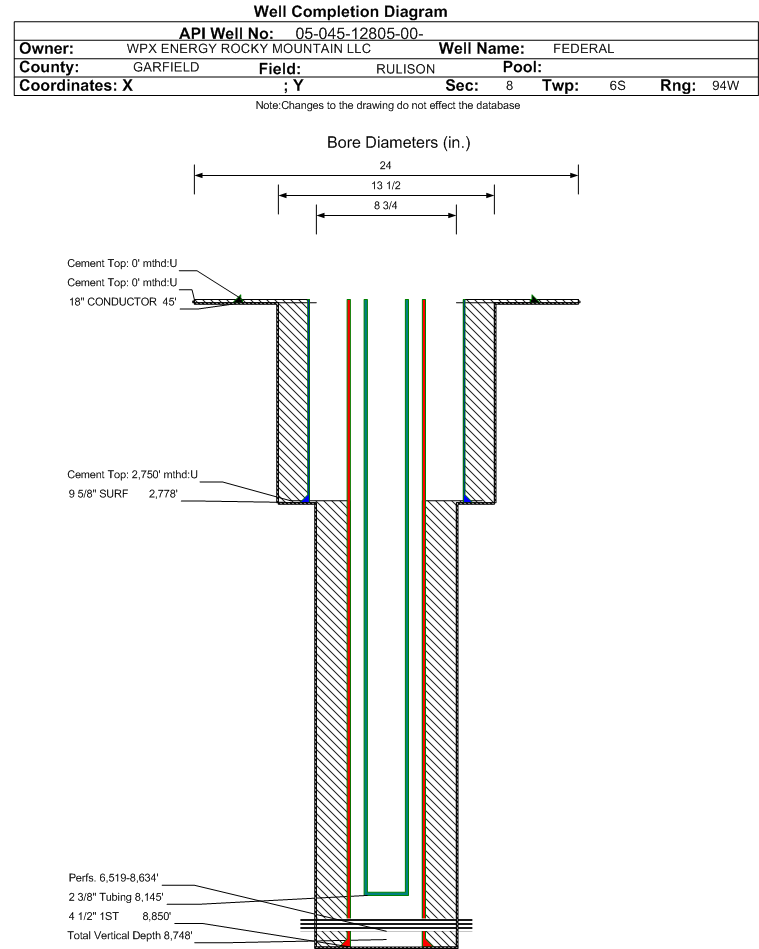 | | Perforation Data: | | Interval Top: | 6519 ft. | # Of Holes: | 119 | | Interval Bottom: | 8634 ft. | Hole Size: | 0.35 in. |