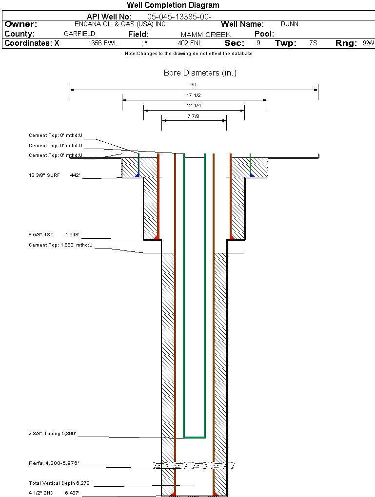 | | Perforation Data: | | Interval Top: | 4300 ft. | # Of Holes: | 92 | | Interval Bottom: | 5976 ft. | Hole Size: | 0.34 in. |