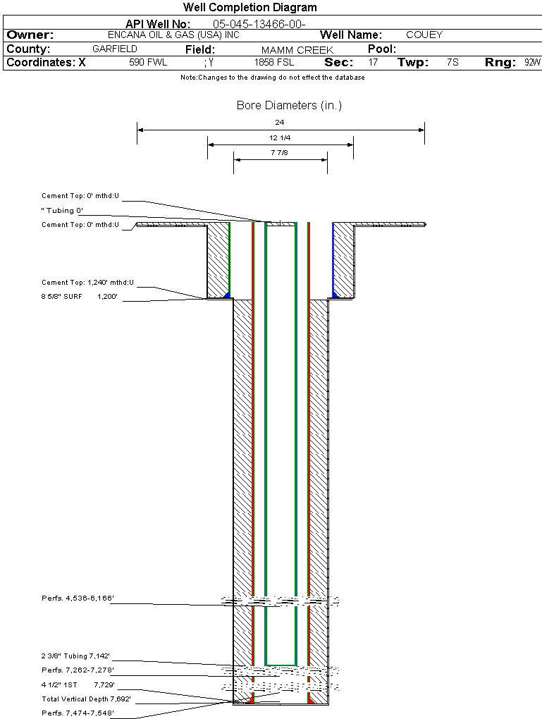 | | Perforation Data: | | Interval Top: | 4536 ft. | # Of Holes: | 86 | | Interval Bottom: | 6166 ft. | Hole Size: | 0.34 in. |