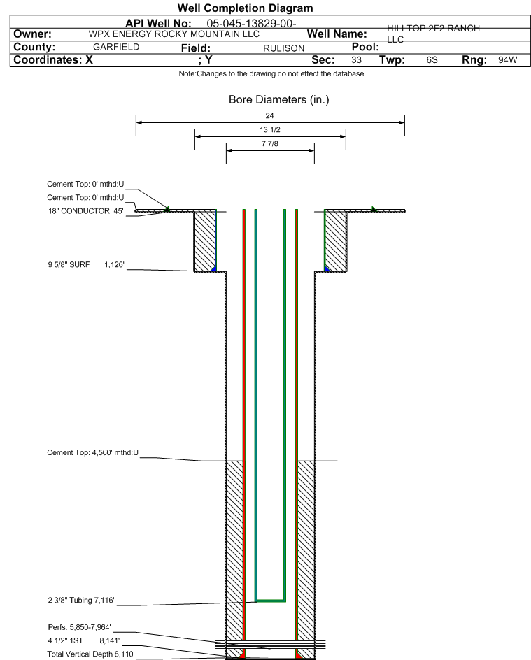 | | Perforation Data: | | Interval Top: | 5850 ft. | # Of Holes: | 172 | | Interval Bottom: | 7964 ft. | Hole Size: | 0.35 in. |
