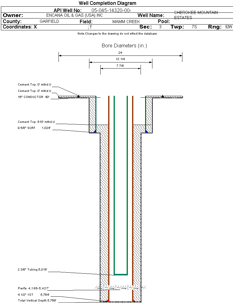 | | Perforation Data: | | Interval Top: | 4186 ft. | # Of Holes: | 94 | | Interval Bottom: | 5427 ft. | Hole Size: | 0.33 in. |