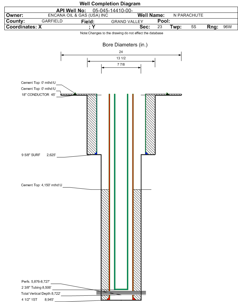 | | Perforation Data: | | Interval Top: | 5876 ft. | # Of Holes: | 201 | | Interval Bottom: | 8727 ft. | Hole Size: | 0.35 in. |