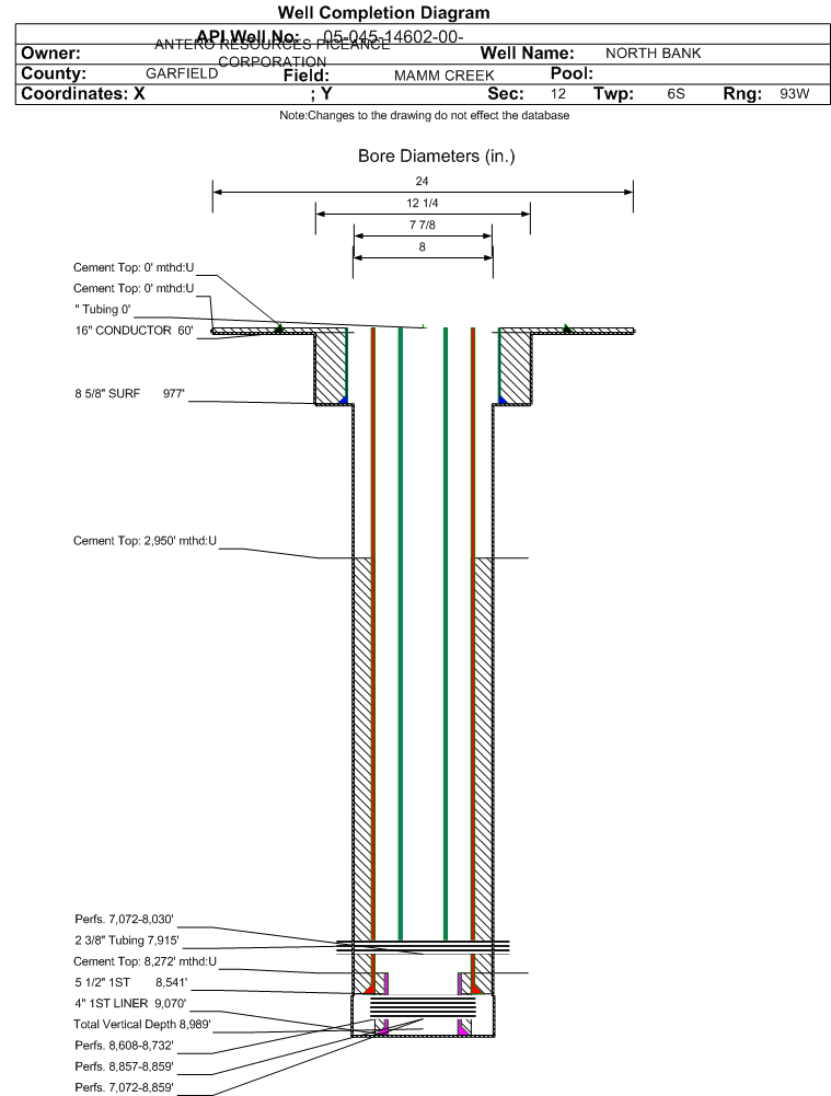 | | Perforation Data: | | Interval Top: | 7072 ft. | # Of Holes: | 216 | | Interval Bottom: | 8030 ft. | Hole Size: | 0.42 in. |