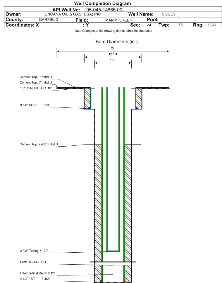 | | Perforation Data: | | Interval Top: | 6213 ft. | # Of Holes: | 142 | | Interval Bottom: | 7723 ft. | Hole Size: | 0.34 in. |