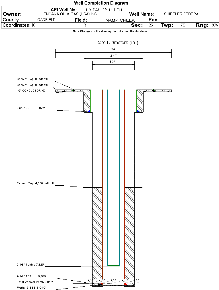 | | Perforation Data: | | Interval Top: | 6338 ft. | # Of Holes: | 136 | | Interval Bottom: | 8010 ft. | Hole Size: | 0.36 in. |