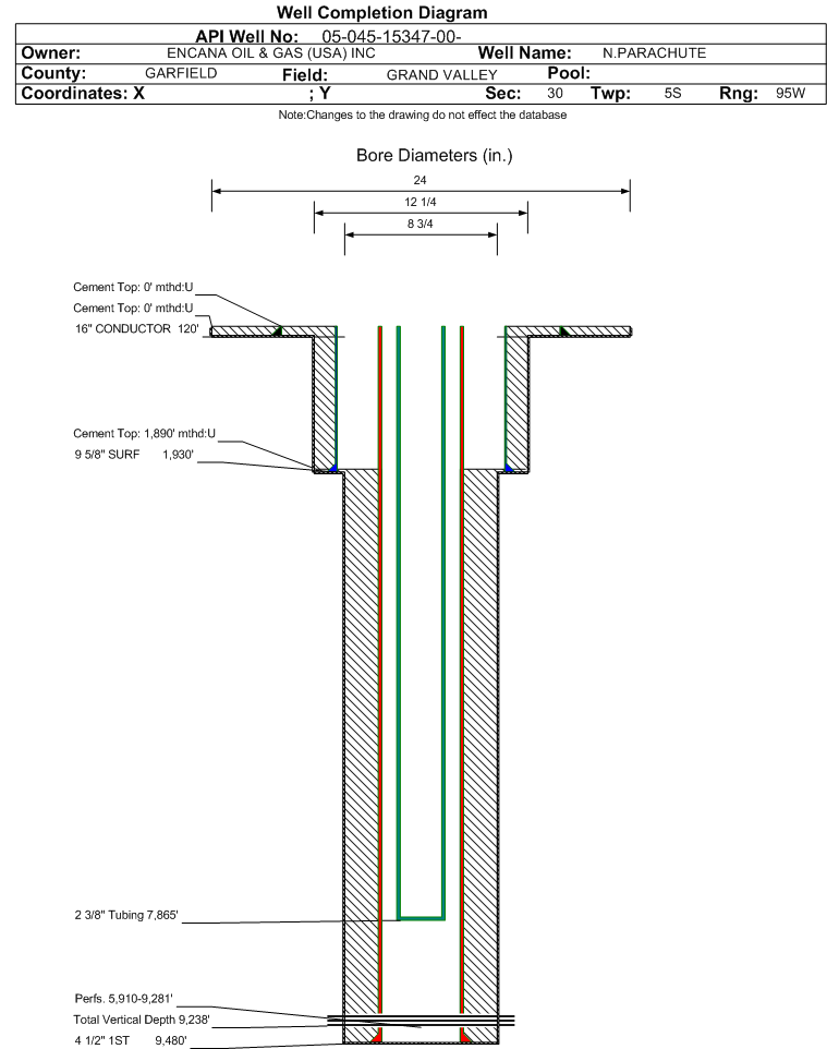 | | Perforation Data: | | Interval Top: | 5910 ft. | # Of Holes: | 330 | | Interval Bottom: | 9281 ft. | Hole Size: | 0.42 in. |