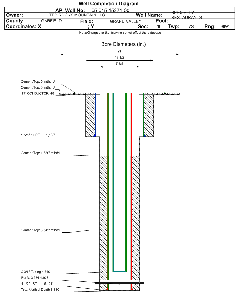 | | Perforation Data: | | Interval Top: | 3634 ft. | # Of Holes: | 101 | | Interval Bottom: | 4938 ft. | Hole Size: | 0.35 in. |