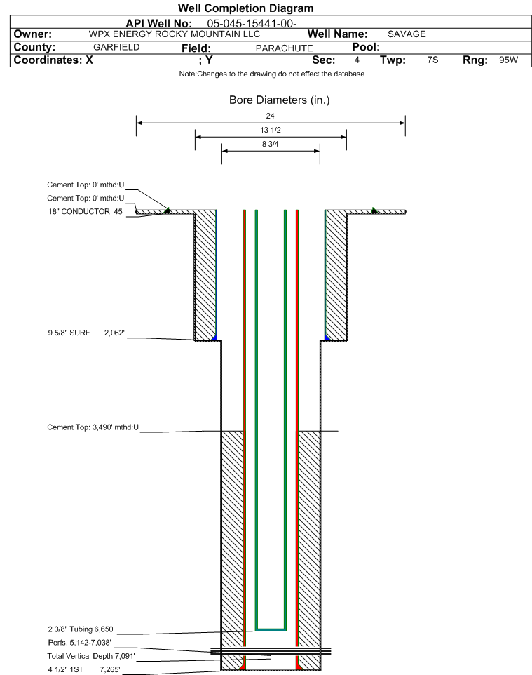 | | Perforation Data: | | Interval Top: | 5142 ft. | # Of Holes: | 114 | | Interval Bottom: | 7038 ft. | Hole Size: | 0.35 in. |
