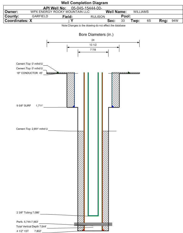 | | Perforation Data: | | Interval Top: | 5744 ft. | # Of Holes: | 132 | | Interval Bottom: | 7563 ft. | Hole Size: | 0.35 in. |