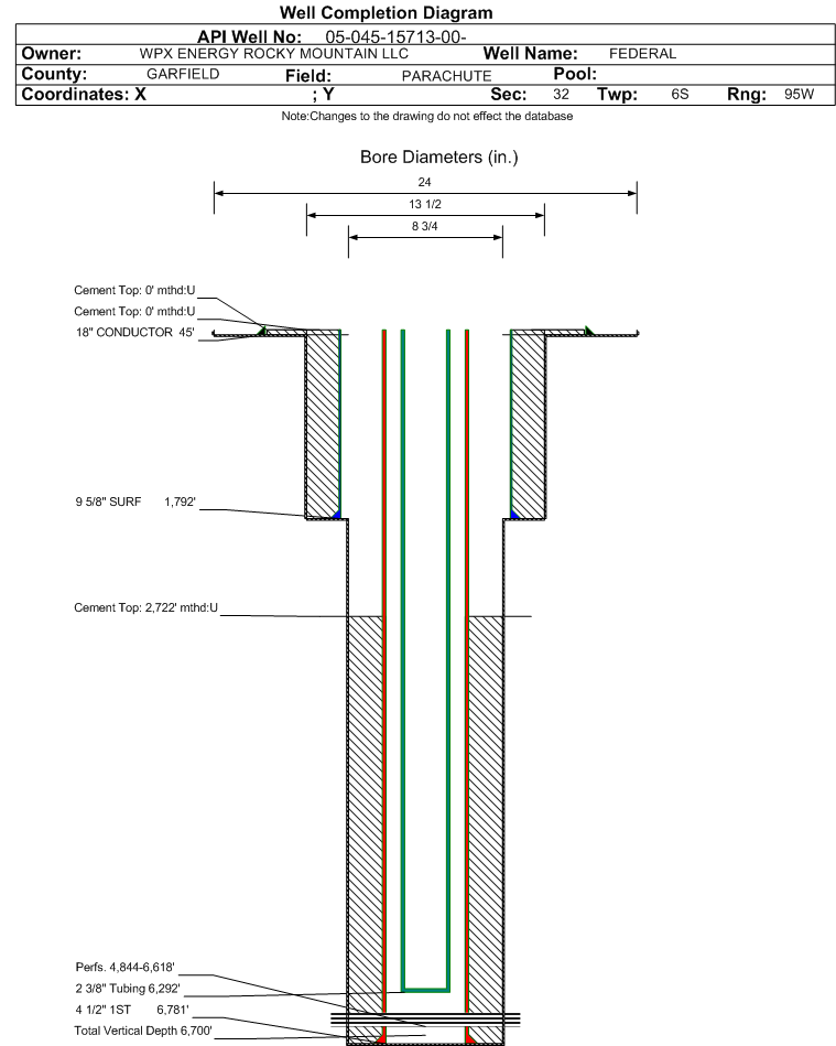 | | Perforation Data: | | Interval Top: | 4844 ft. | # Of Holes: | 119 | | Interval Bottom: | 6618 ft. | Hole Size: | 0.35 in. |