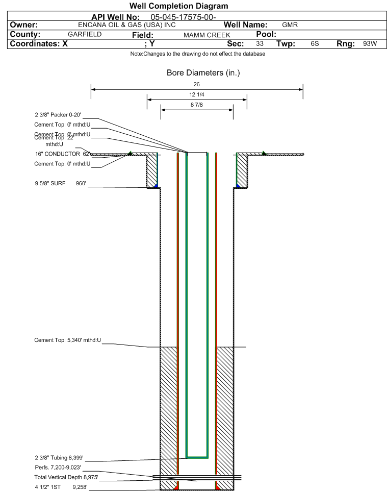 Formation WMFK Formation Classification: GW Status: PR - 1/1/2023 Interval Top: 7200 ft. Interval Bottom: 9023 ft.| Completed Information for Formation WILLIAMS FORK | | 1st Production Date: | 8/11/2009 | Choke Size: | 0.313 in. | | Formation Name: | WILLIAMS FORK | Commingled: | No | | Production Method: | | | Open Hole Completion: | No |