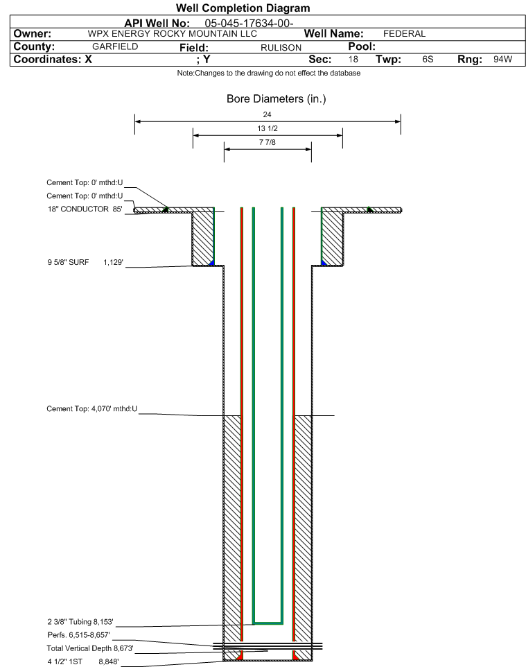| | Perforation Data: | | Interval Top: | 6515 ft. | # Of Holes: | 158 | | Interval Bottom: | 8657 ft. | Hole Size: | 0.35 in. |