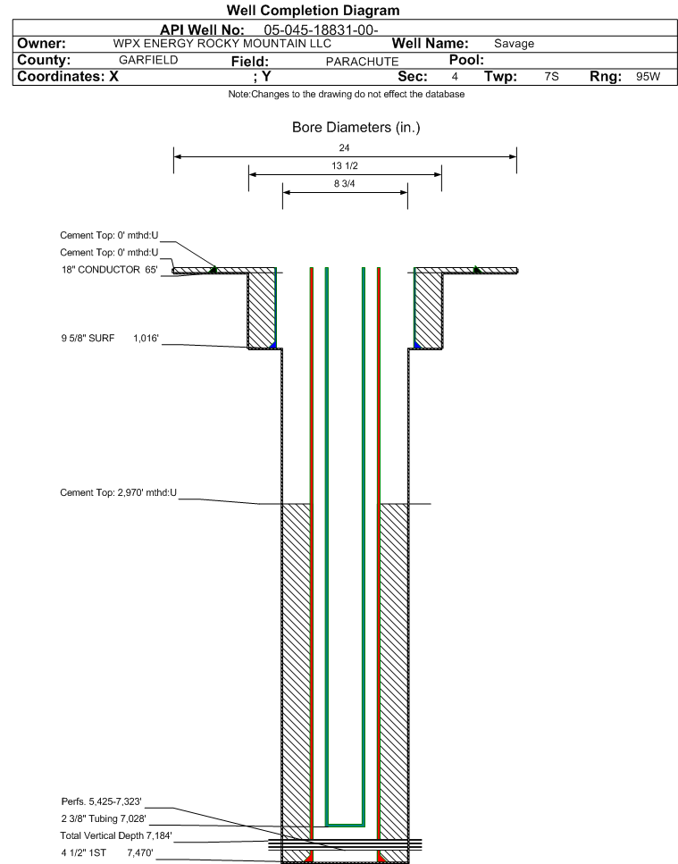 | Wellbore Completed | | Completion Date: | 2/17/2011 | | Spud Date: | 2/8/2011 | Spud Date Is: | ACTUAL | | Measured TD: | 7490 ft. | Measured PB depth: | 7441 ft. | | True Vertical TD: | 7184 ft. | True Vertical PB depth: | 7135 ft. | | Top PZ Location: | Sec:4 Twp: 7S 95W | Footage: 1169 FSL 797 FEL | | Bottom Hole Location: | Sec:4 Twp: 7S 95W | Footage: 1152 FSL 800 FEL | | Log Types: | CBL & RESERVOIR PERFORMANCE MONITOR (RPM),