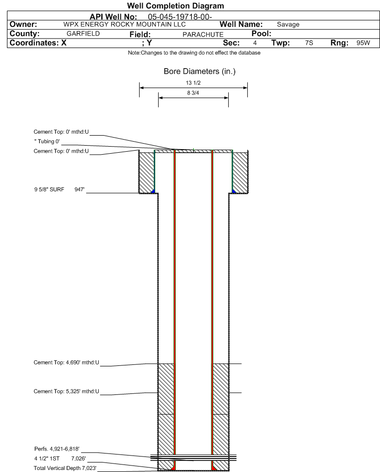 | | Perforation Data: | | Interval Top: | 4921 ft. | # Of Holes: | 106 | | Interval Bottom: | 6818 ft. | Hole Size: | 0.35 in. |