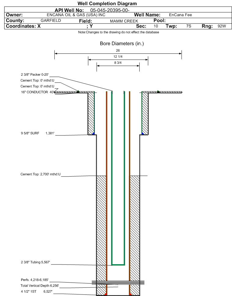 | | Perforation Data: | | Interval Top: | 4218 ft. | # Of Holes: | 243 | | Interval Bottom: | 6185 ft. | Hole Size: | 0.34 in. |