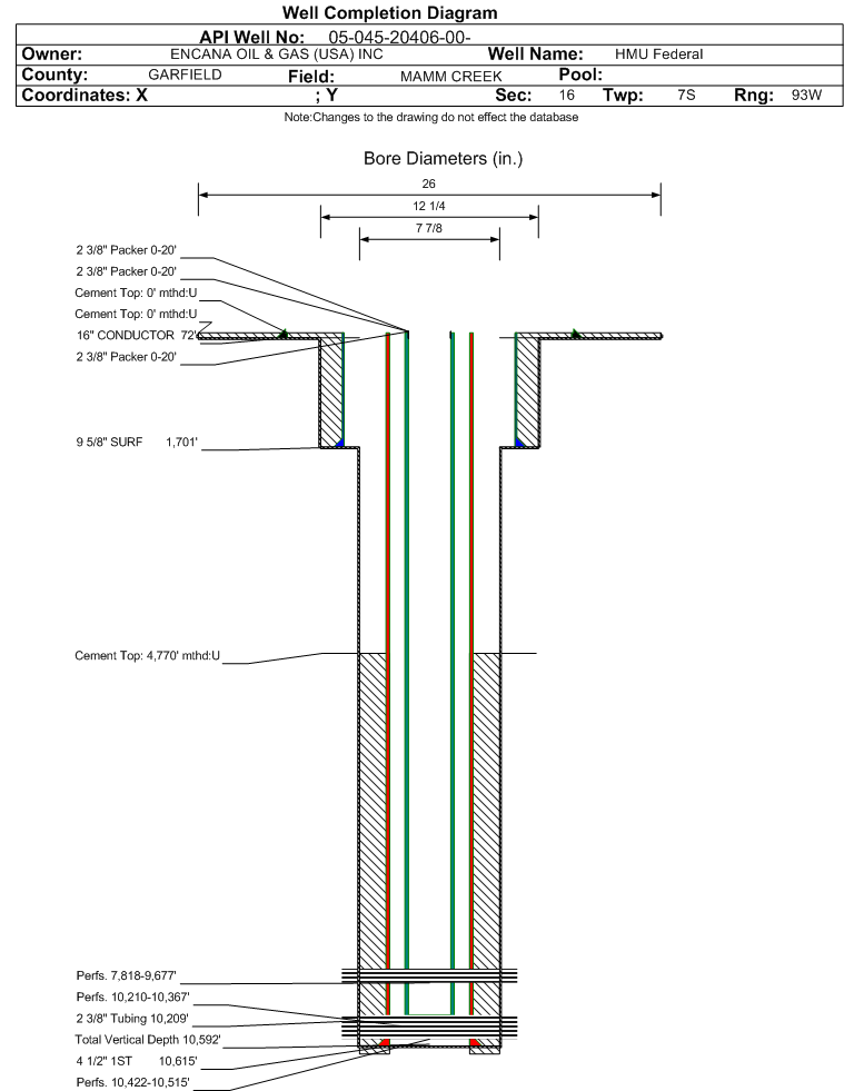 | | Perforation Data: | | Interval Top: | 10422 ft. | # Of Holes: | 27 | | Interval Bottom: | 10515 ft. | Hole Size: | 0.38 in. |