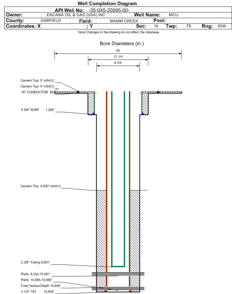 | | Perforation Data: | | Interval Top: | 8220 ft. | # Of Holes: | 189 | | Interval Bottom: | 10091 ft. | Hole Size: | 0.38 in. |