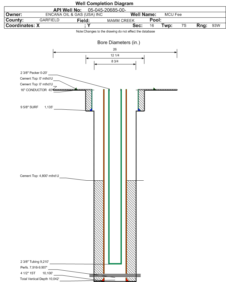| | Perforation Data: | | Interval Top: | 7916 ft. | # Of Holes: | 189 | | Interval Bottom: | 9907 ft. | Hole Size: | 0.38 in. |