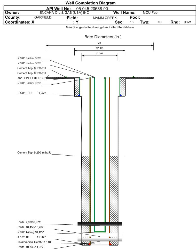 | | Perforation Data: | | Interval Top: | 10450 ft. | # Of Holes: | 27 | | Interval Bottom: | 10707 ft. | Hole Size: | 0.34 in. |