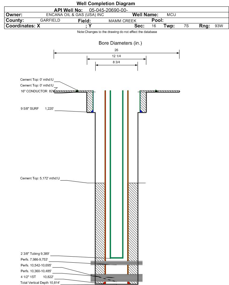 | | Perforation Data: | | Interval Top: | 10542 ft. | # Of Holes: | 27 | | Interval Bottom: | 10695 ft. | Hole Size: | 0.38 in. |