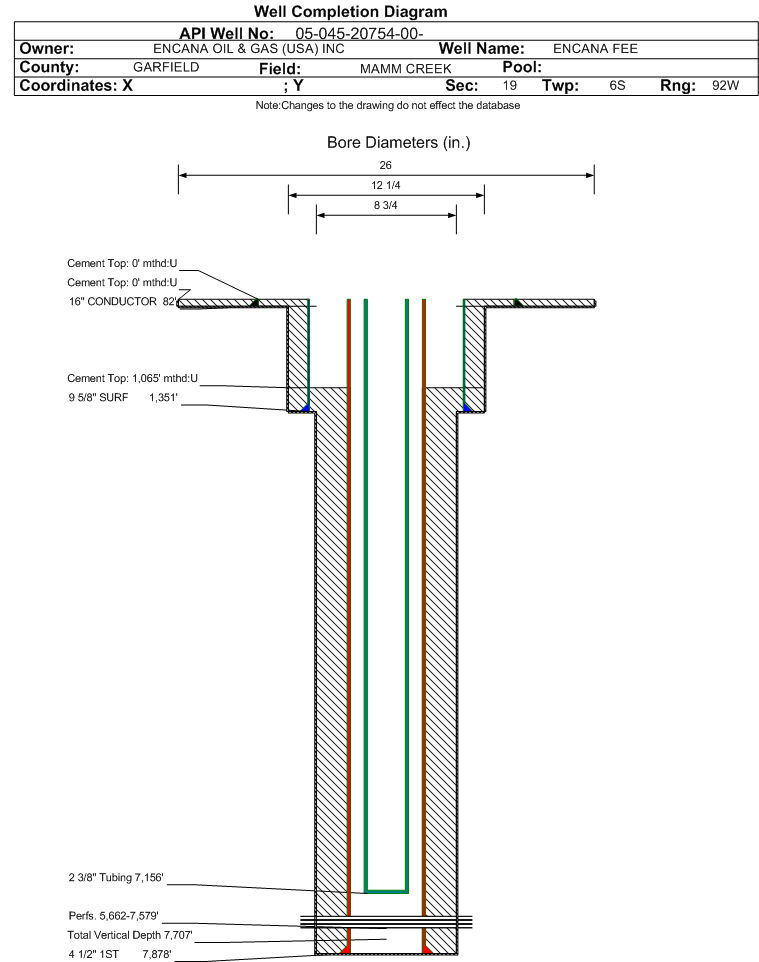 | | Perforation Data: | | Interval Top: | 5662 ft. | # Of Holes: | 189 | | Interval Bottom: | 7579 ft. | Hole Size: | 0.38 in. |