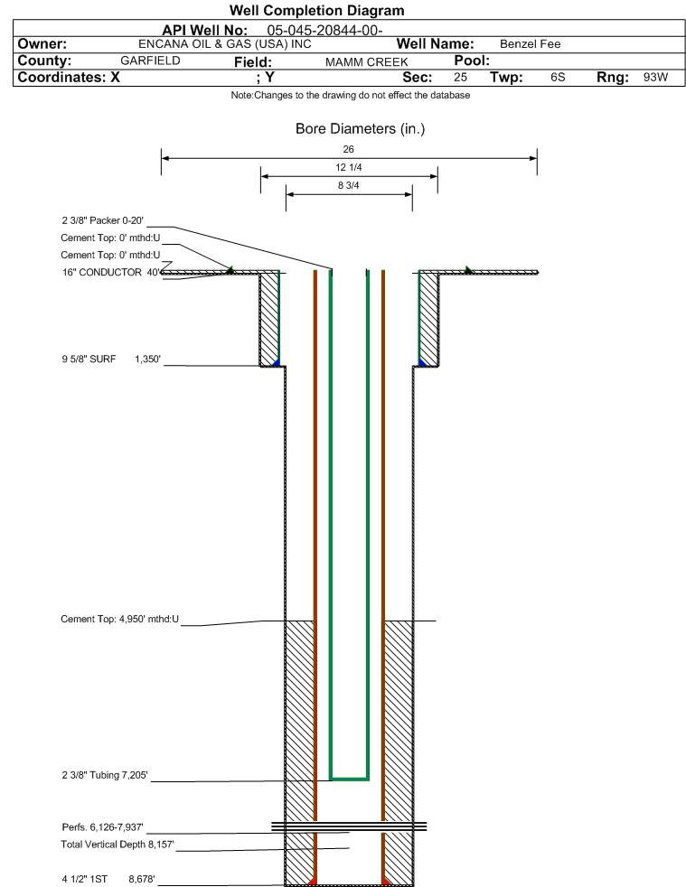 | | Perforation Data: | | Interval Top: | 6126 ft. | # Of Holes: | 177 | | Interval Bottom: | 7937 ft. | Hole Size: | 0.34 in. |