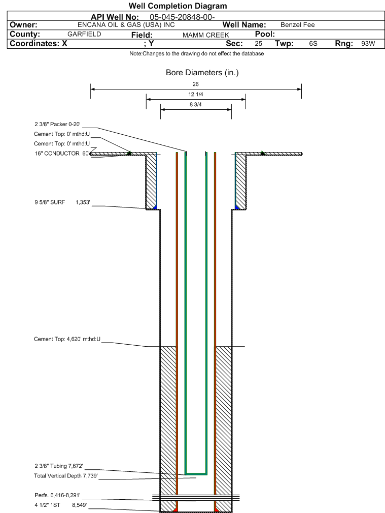 | | Perforation Data: | | Interval Top: | 6416 ft. | # Of Holes: | 216 | | Interval Bottom: | 8291 ft. | Hole Size: | 0.34 in. |