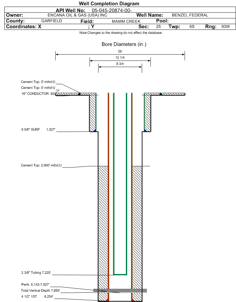 | | Perforation Data: | | Interval Top: | 6142 ft. | # Of Holes: | 162 | | Interval Bottom: | 7927 ft. | Hole Size: | 0.38 in. |