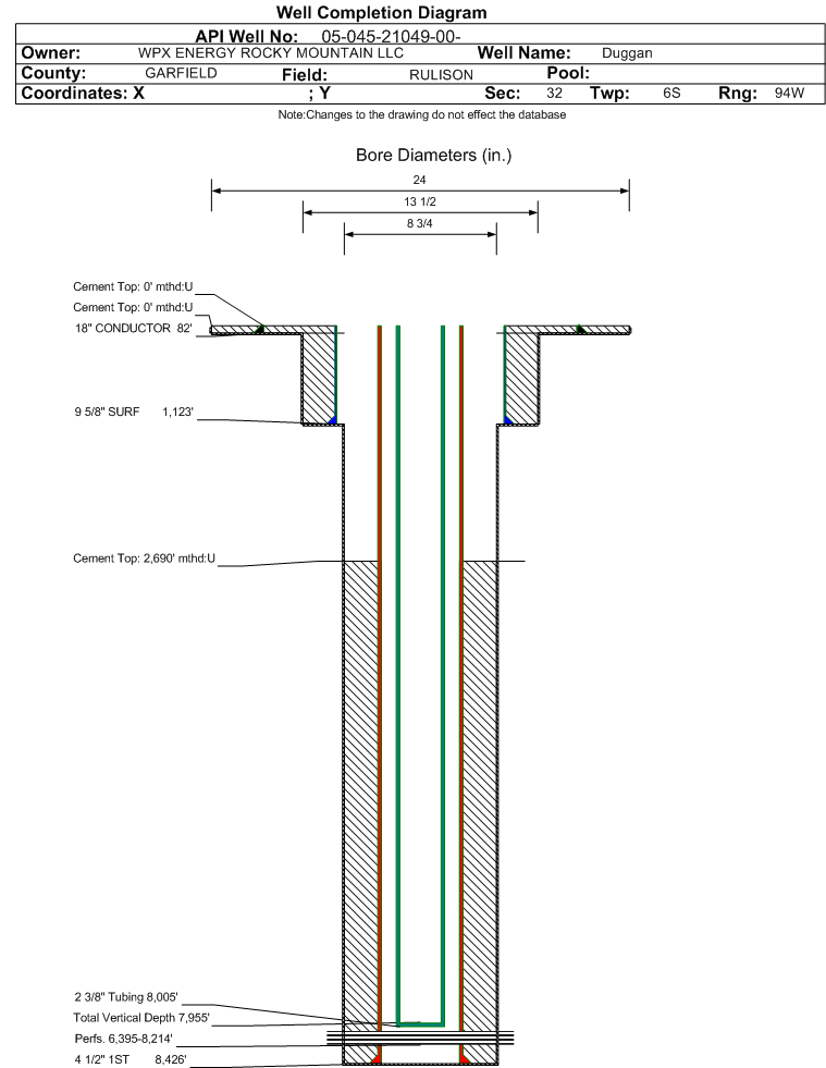 Cement:Sacks: 1405, Top: 2690 ft., Bottom: 8426 ft., Determination Method: CBL